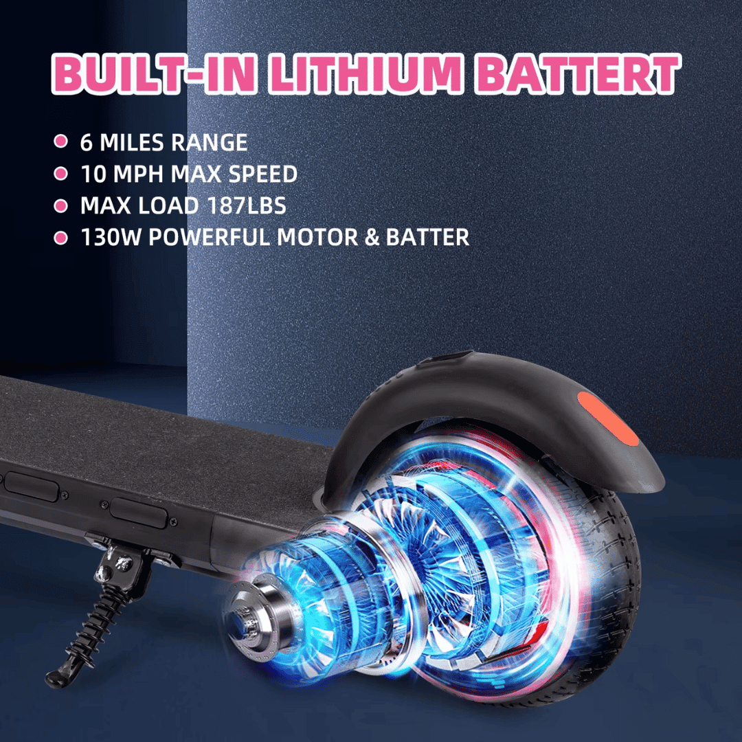 • المحرك والسرعة: يعمل السكوتر بمحرك بقدرة 130 واط، ويوفر سرعة قصوى تصل إلى 15 كم/ساعة، وهو ما يعد مناسبًا وآمنًا للأطفال. هذه السرعة معتدلة وتمنح الطفل إحساسًا بالإثارة دون أن تشكل خطورة على سلامته، كما أن المحرك الهادئ يضيف إلى تجربة الاستخدام المريحة.